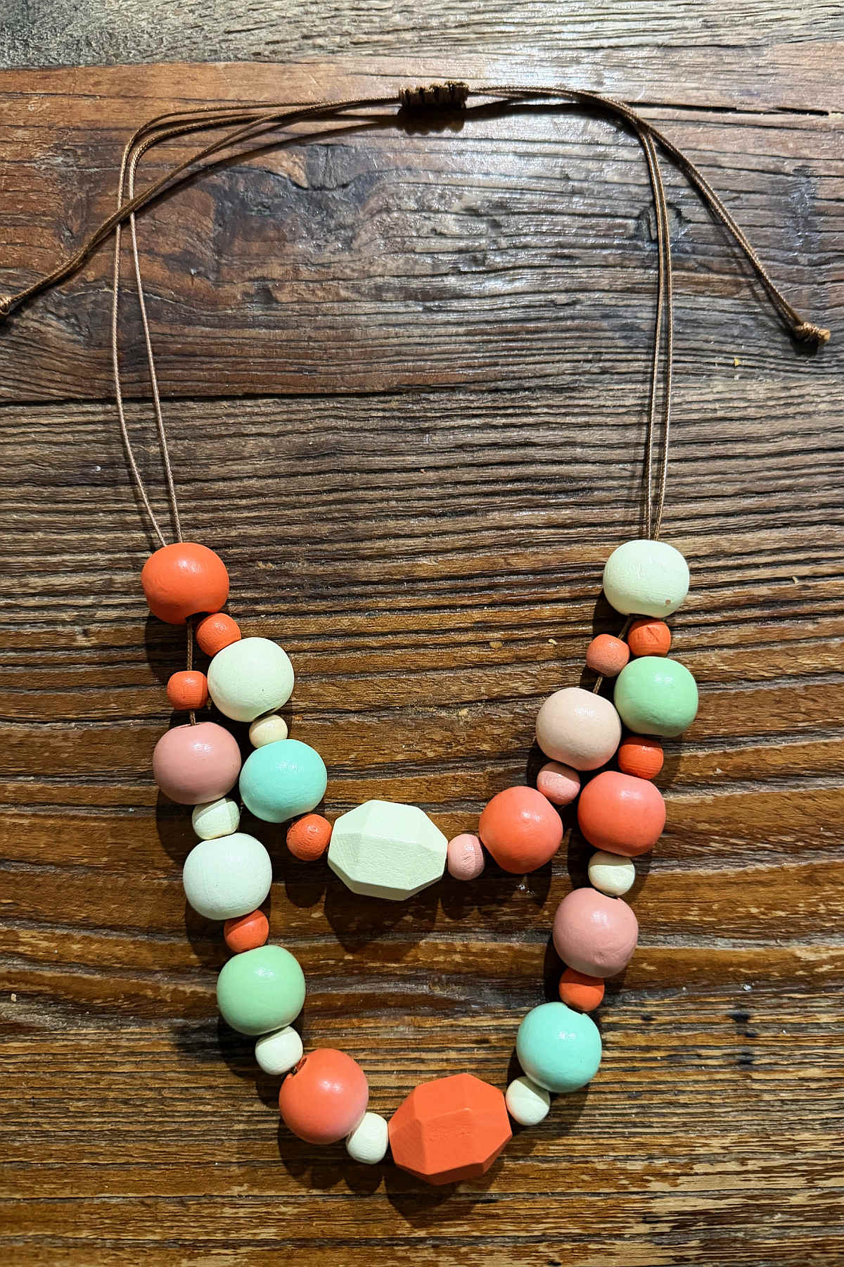 Boho Multicolour Adjustable Wooden Bead Necklace