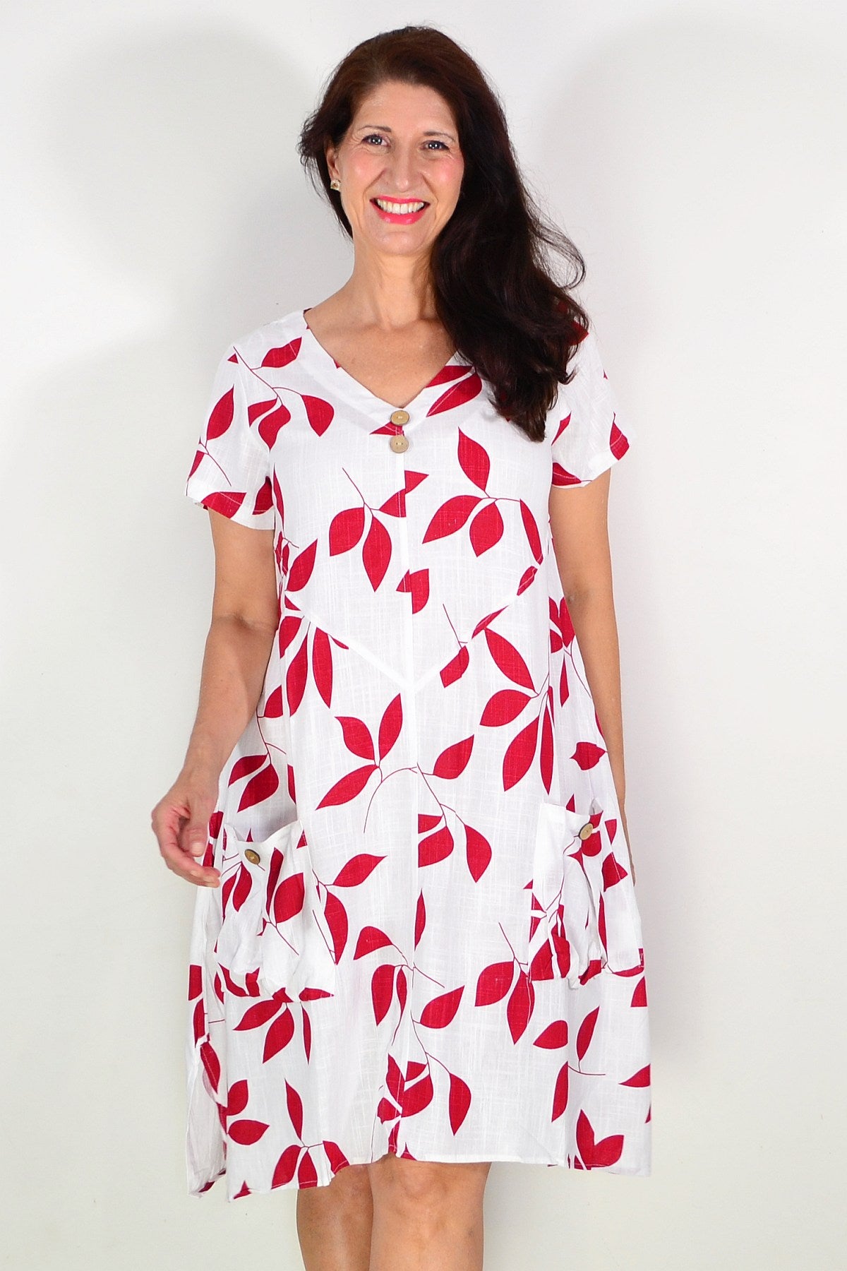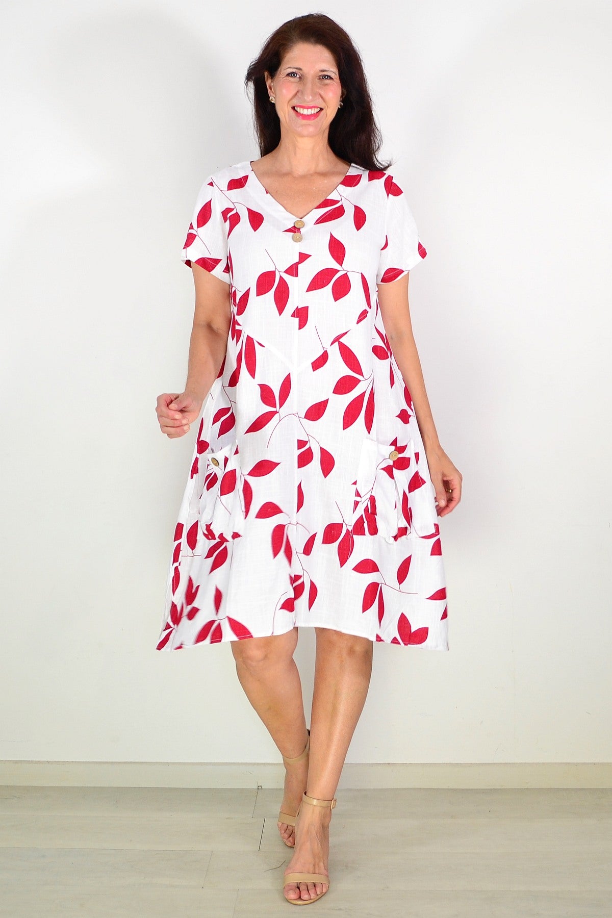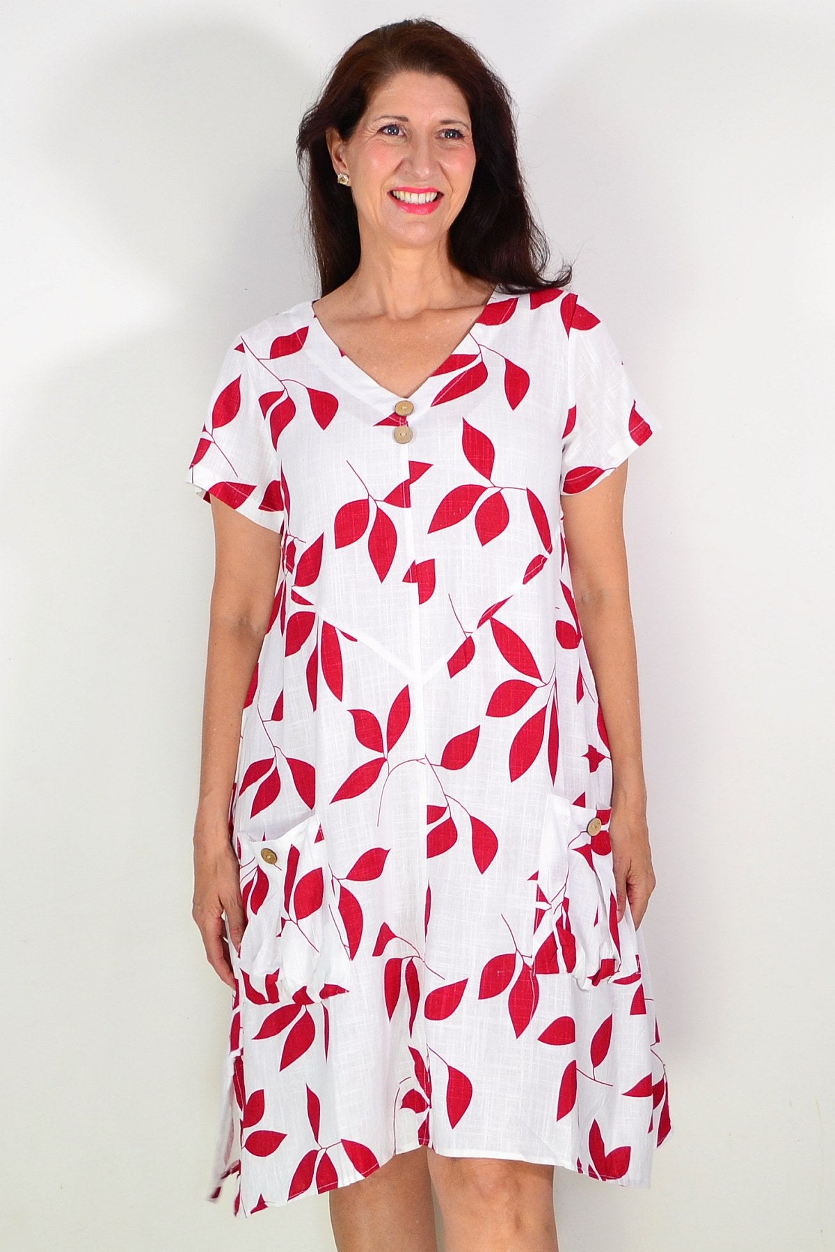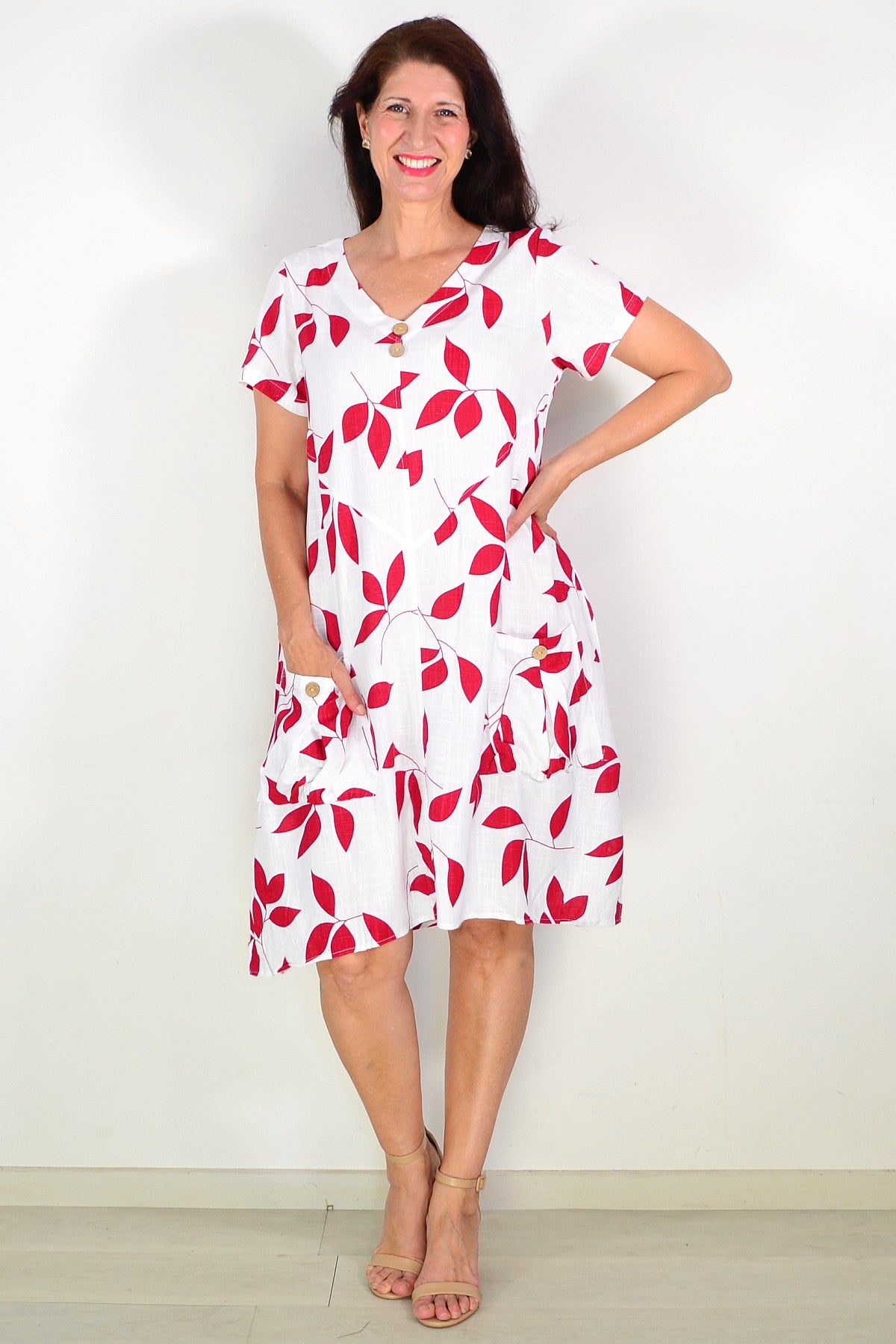 Red Petals Linen Blend Short Sleeves Tunic Dress is available in size 10 to 18 - Please have a look at our sizing guide to help you selected the size that compliments you