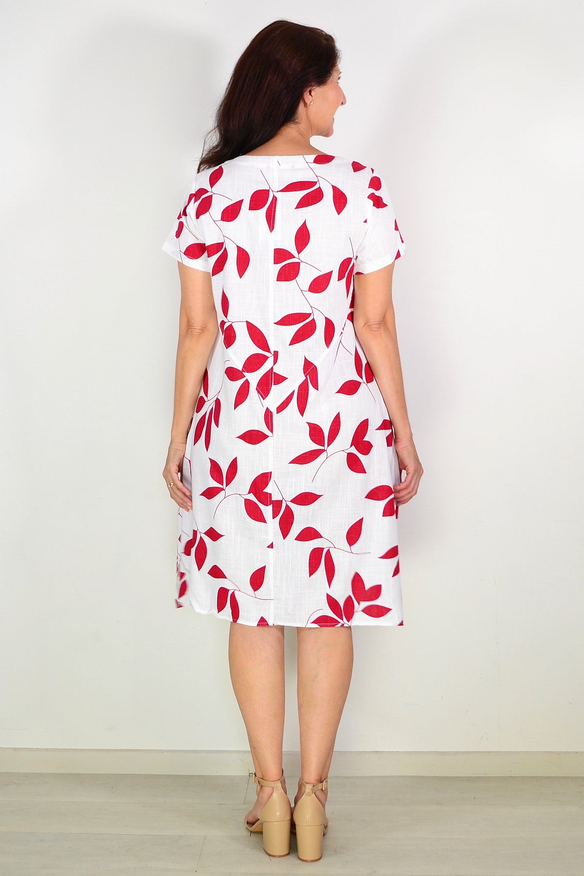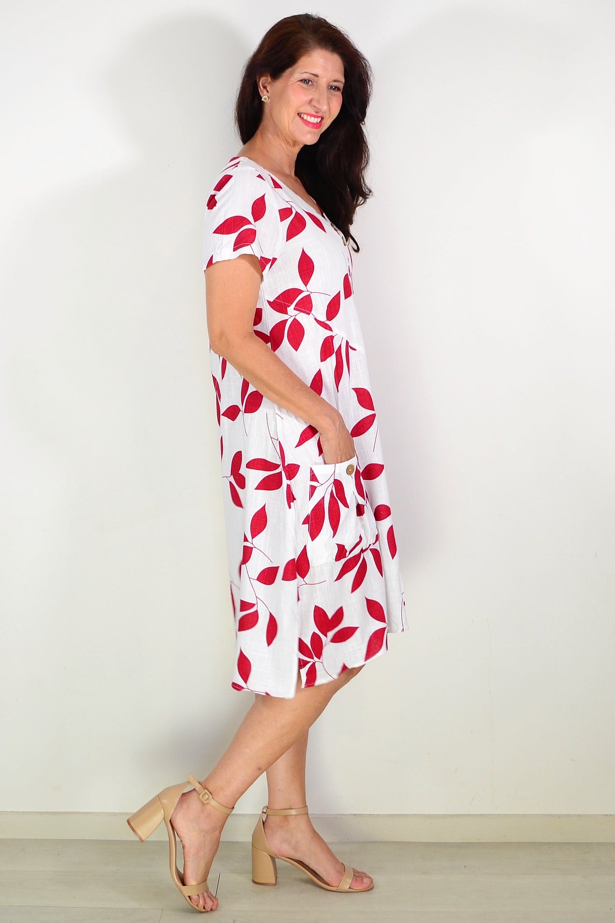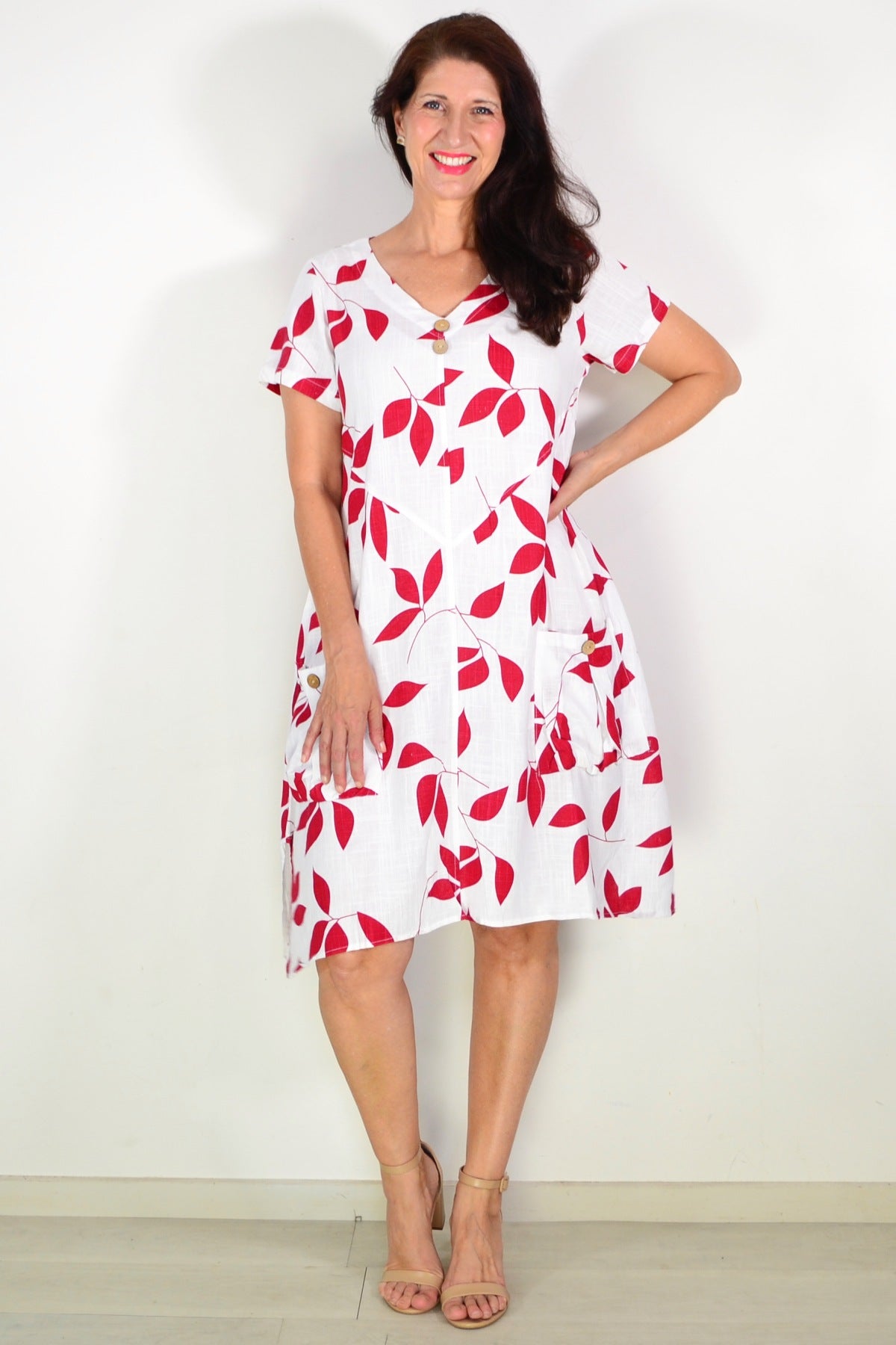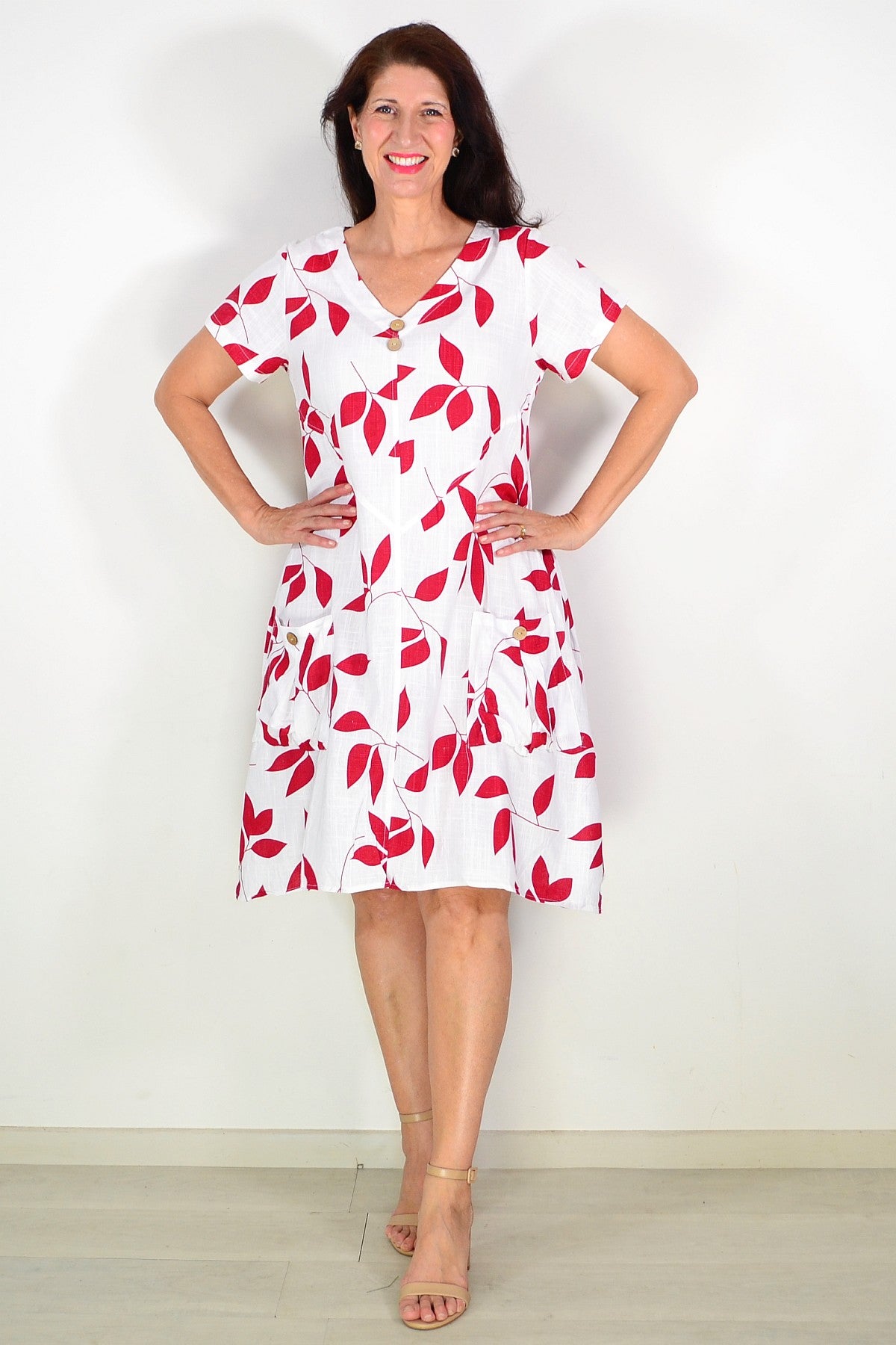 Red Petals Linen Blend Short Sleeves Tunic Dress is available in size 10 to 18 - Please have a look at our sizing guide to help you selected the size that compliments you