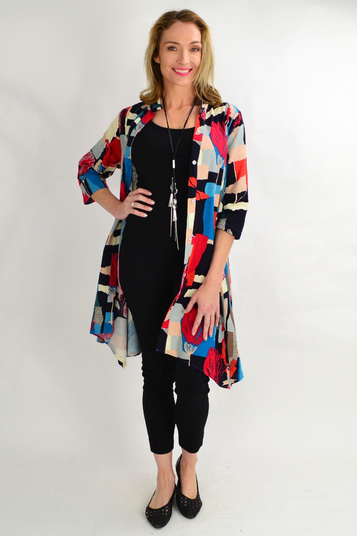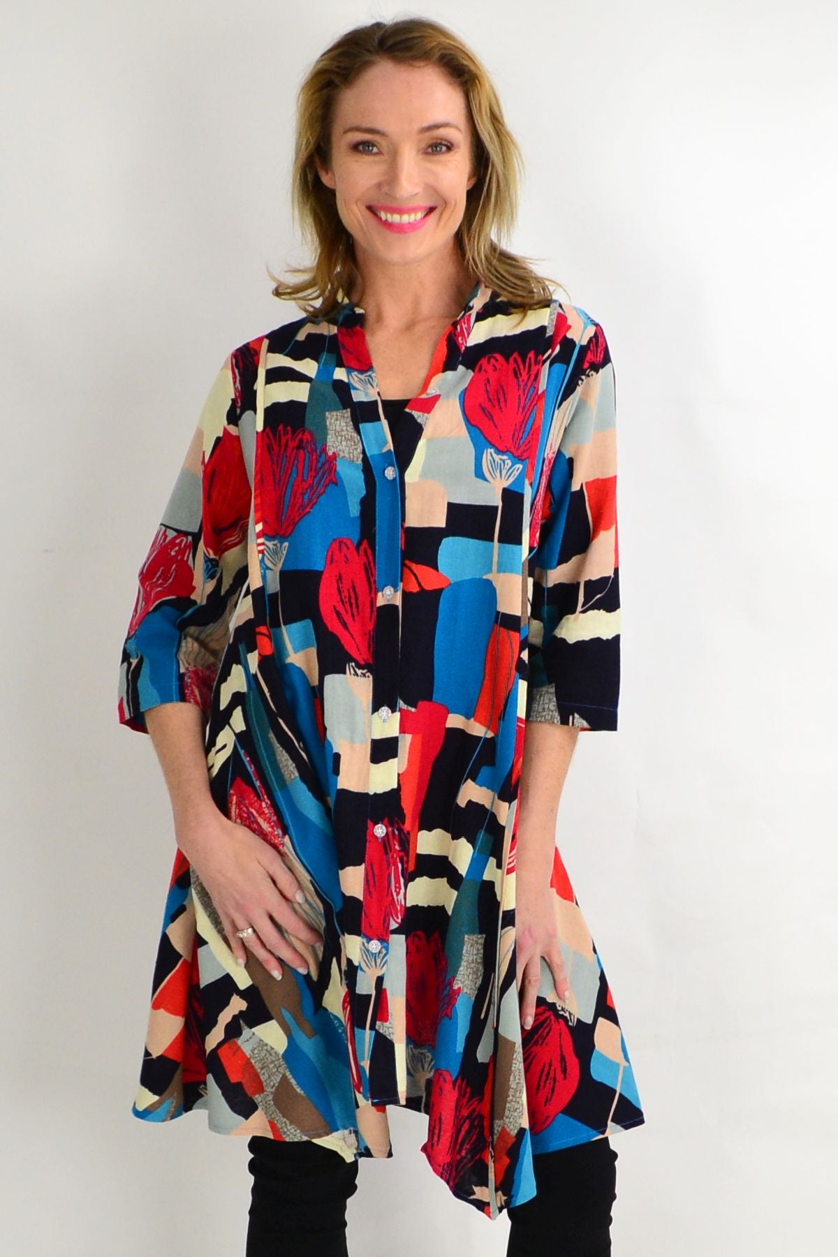 Cheery Tulip Stand Collar Long Shirt is available in size 14 to 20 - Please have a look at our sizing guide to help you selected the size that compliments you