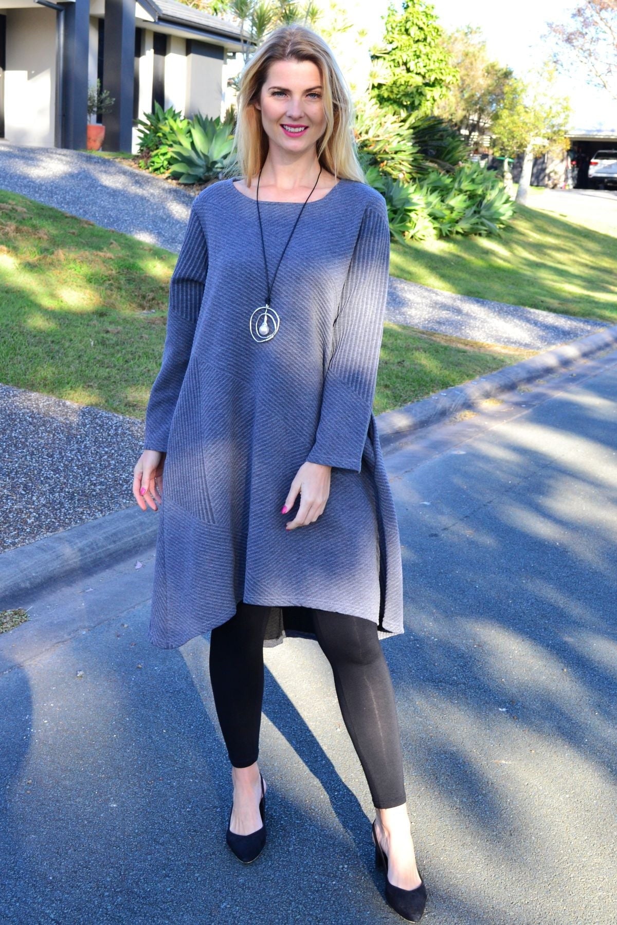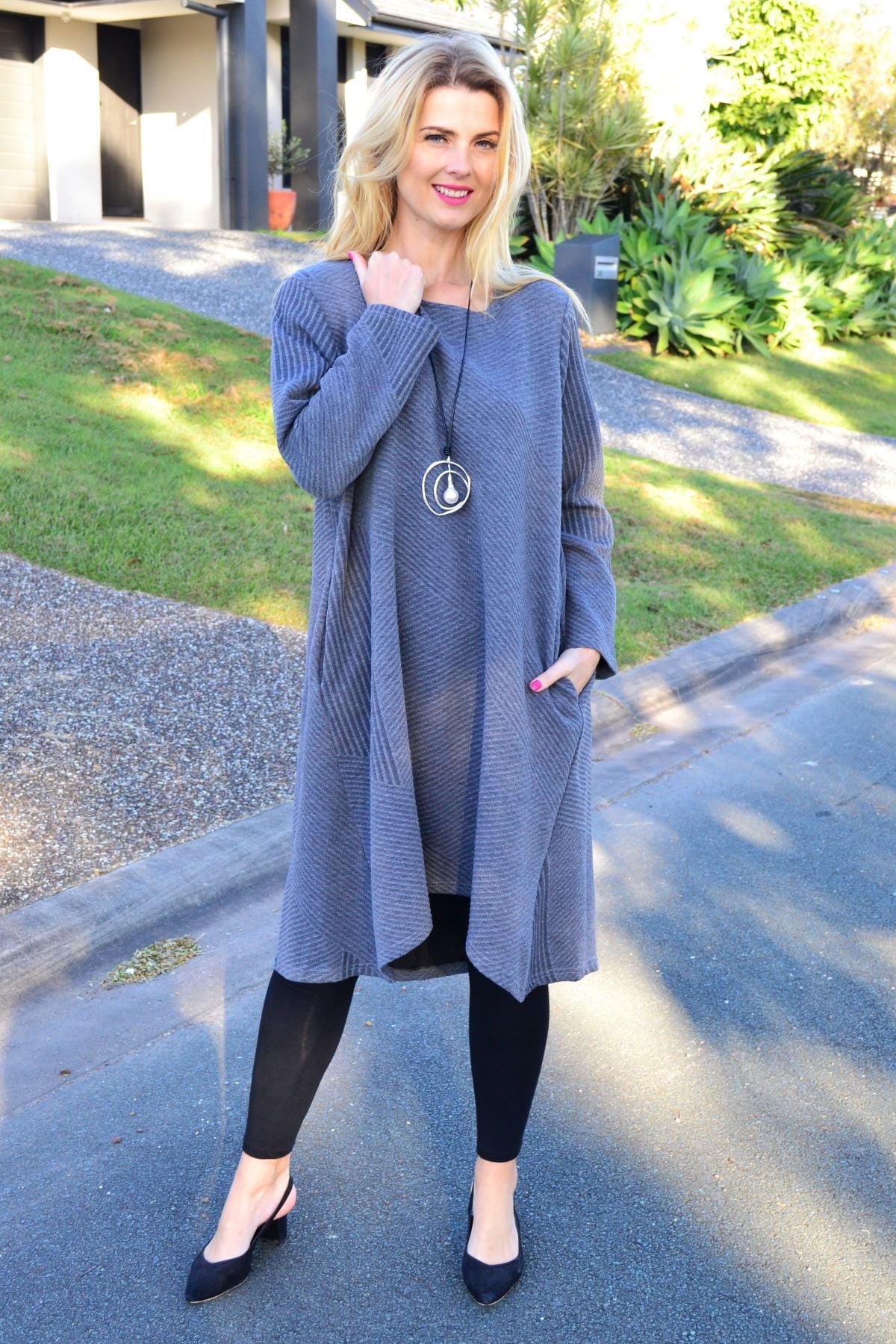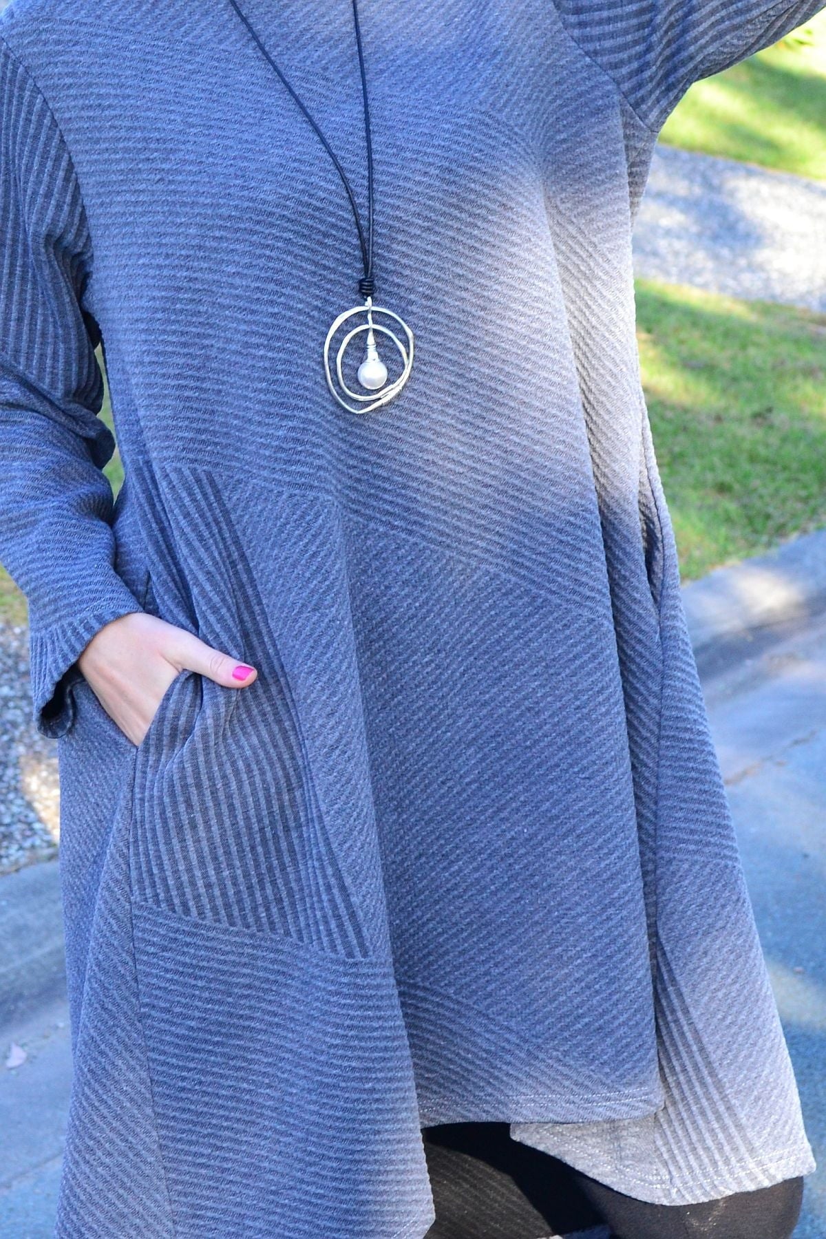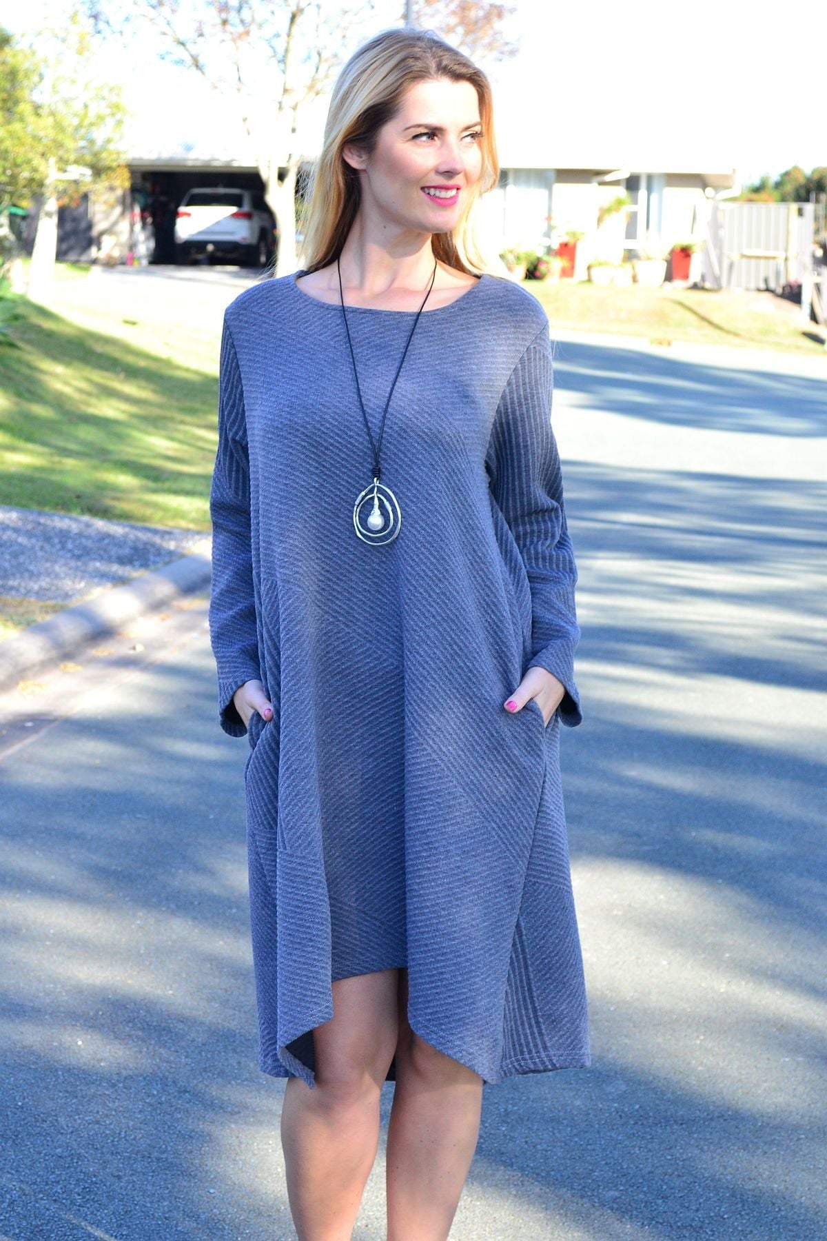 Relaxed Grey Textured Tunic Dress