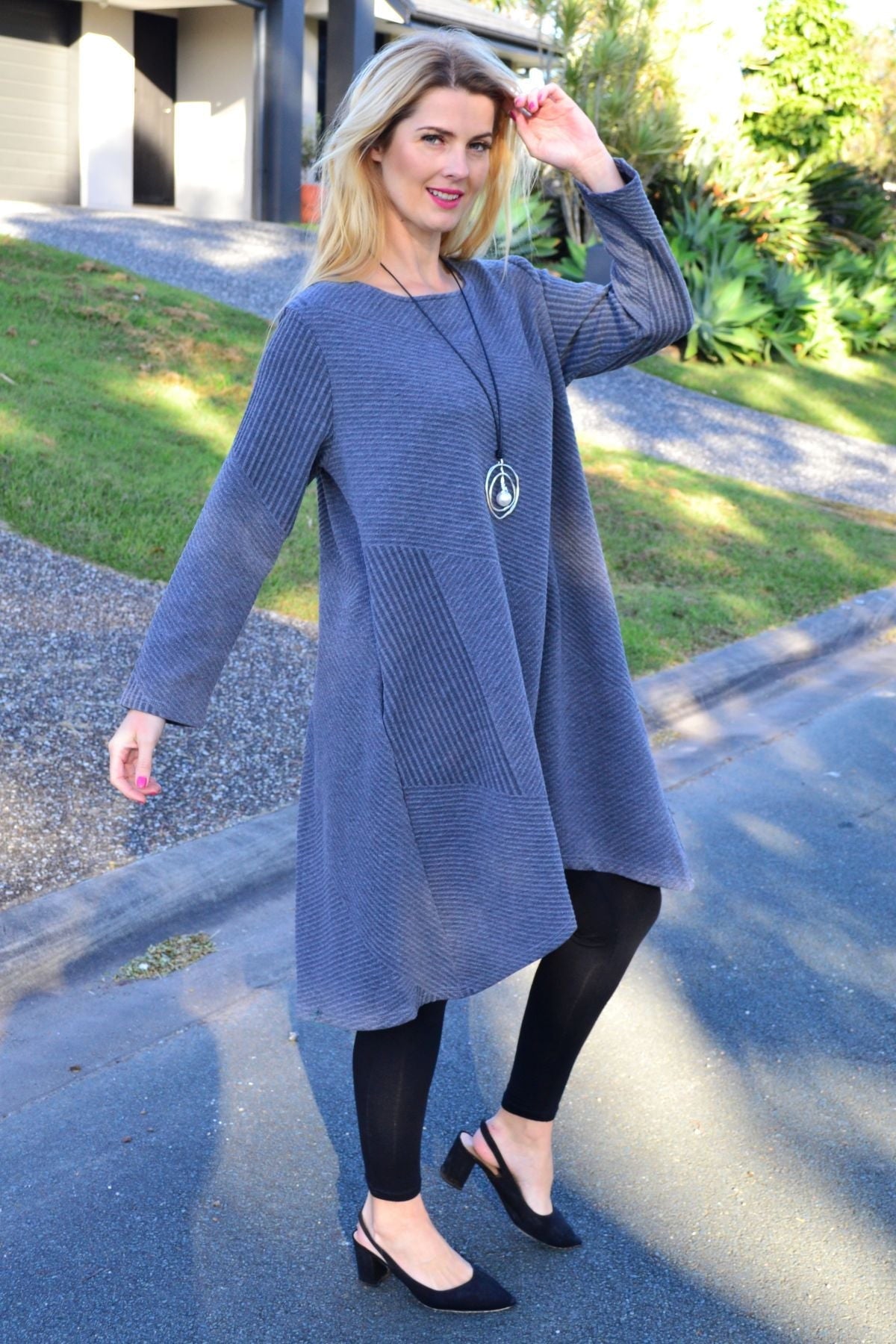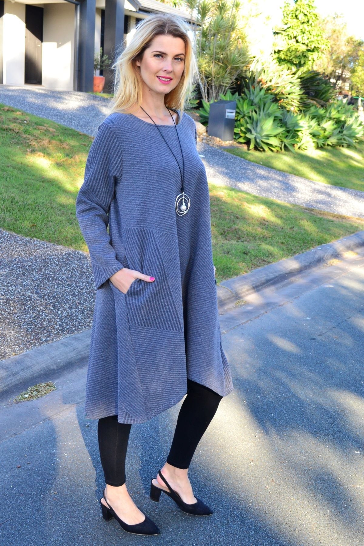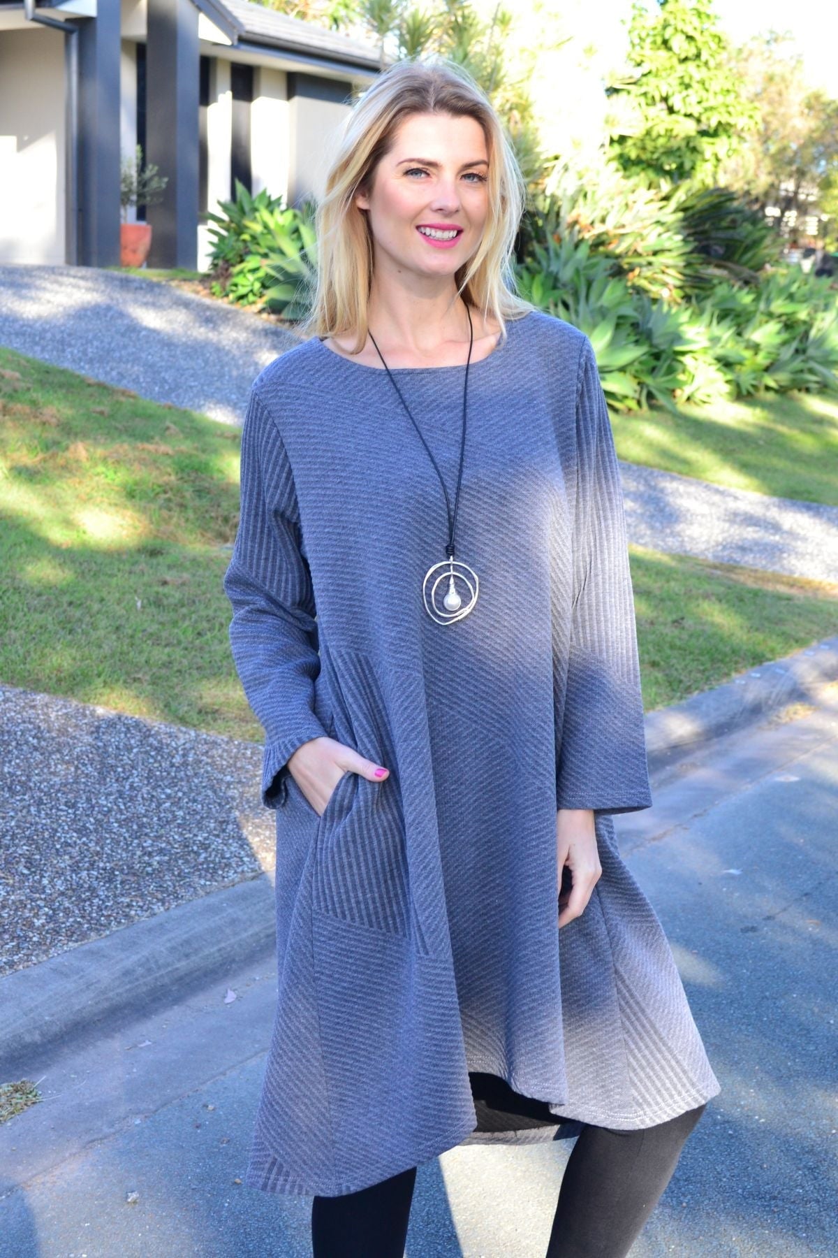 The subtle textured finish adds depth and interest, while the easy silhouette drapes beautifully on all body types. Whether you're heading out for a casual day, running errands, or travelling, this tunic dress is made to move with you.