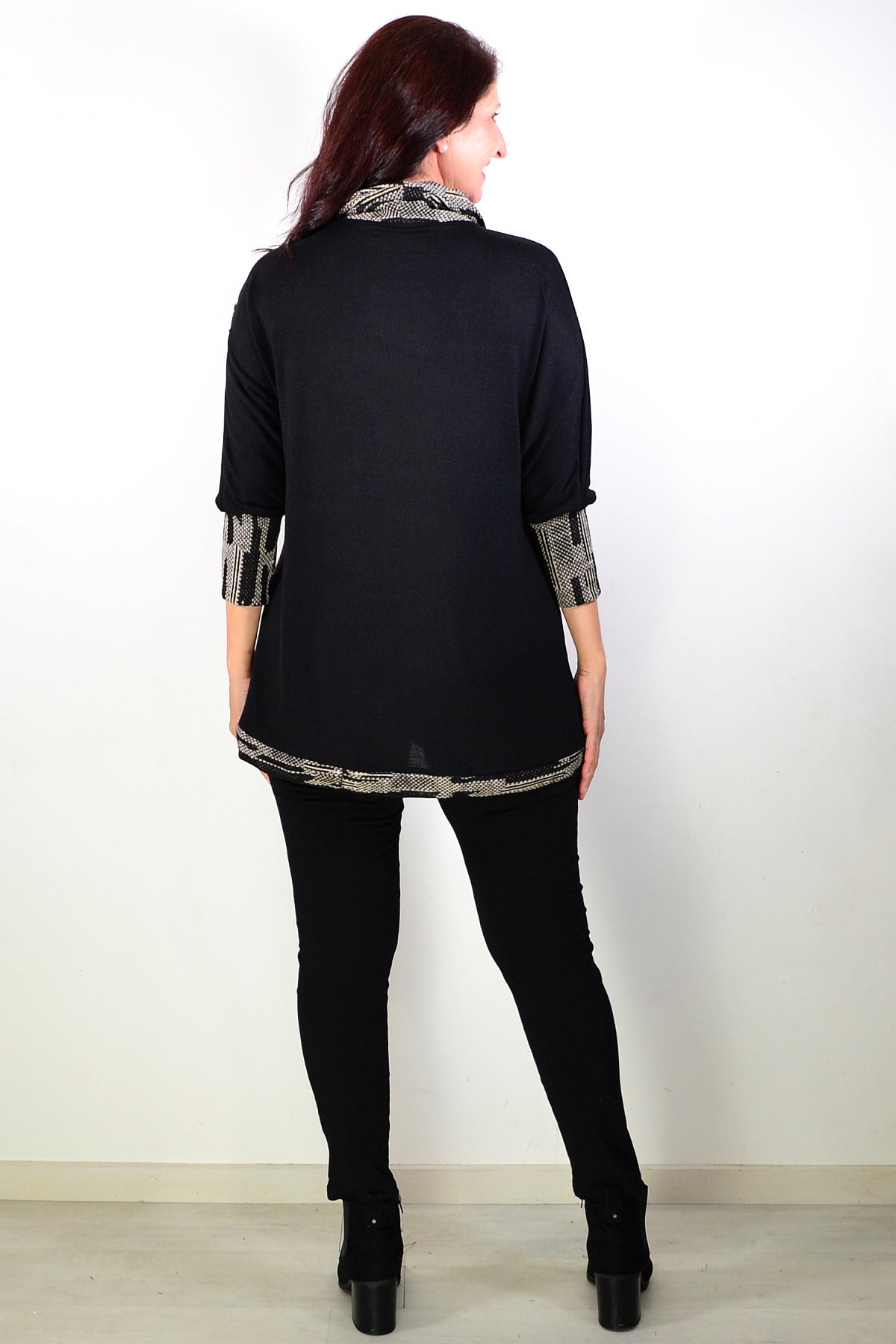 Black Tunic Blouse with Grey Contrast Trim