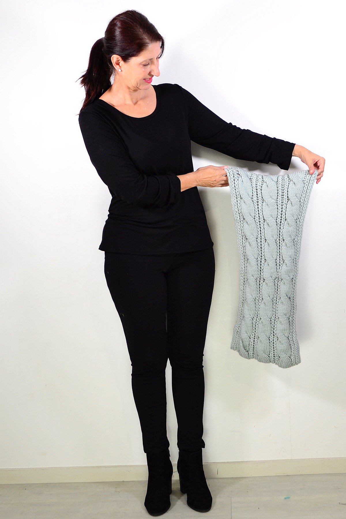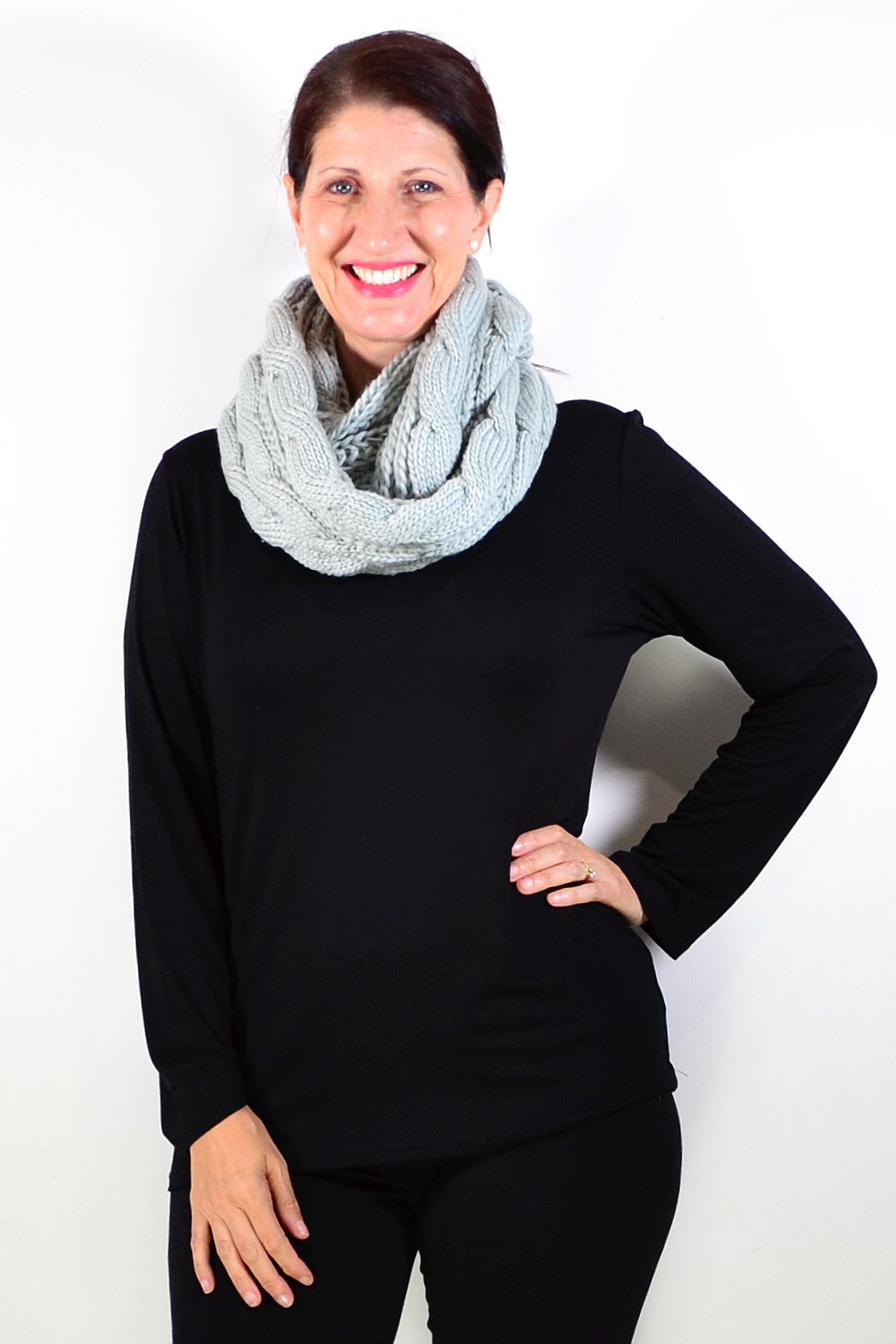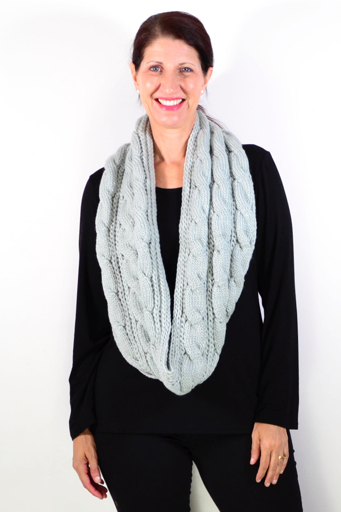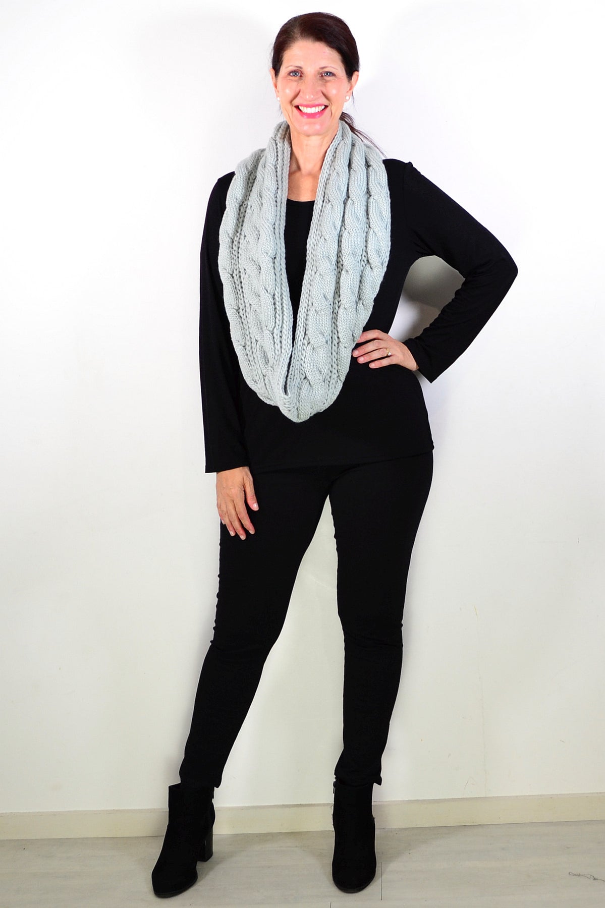 Stay effortlessly stylish this winter with the Light Grey Infinity Snood Scarf. Designed with classic honeycomb and cable knit detailing, it adds texture and warmth to your look. Wear it double-wrapped for a cozy infinity style or loosely draped for a relaxed feel. Pair it with a solid-colour tunic and pants for a refined, sophisticated winter outfit